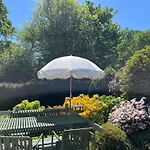 Terraço oferece vistas para o jardim. Secador de cabelo, lençóis de banho e toalhas estão incluídos para maior conforto.